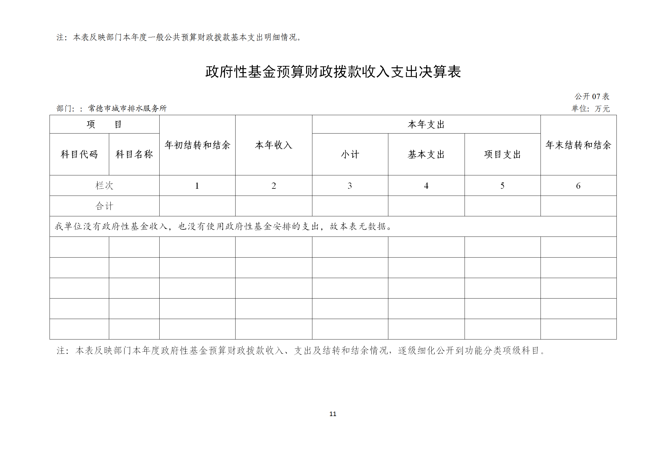 七、政府性基金预算财政拨款收入支出决算表