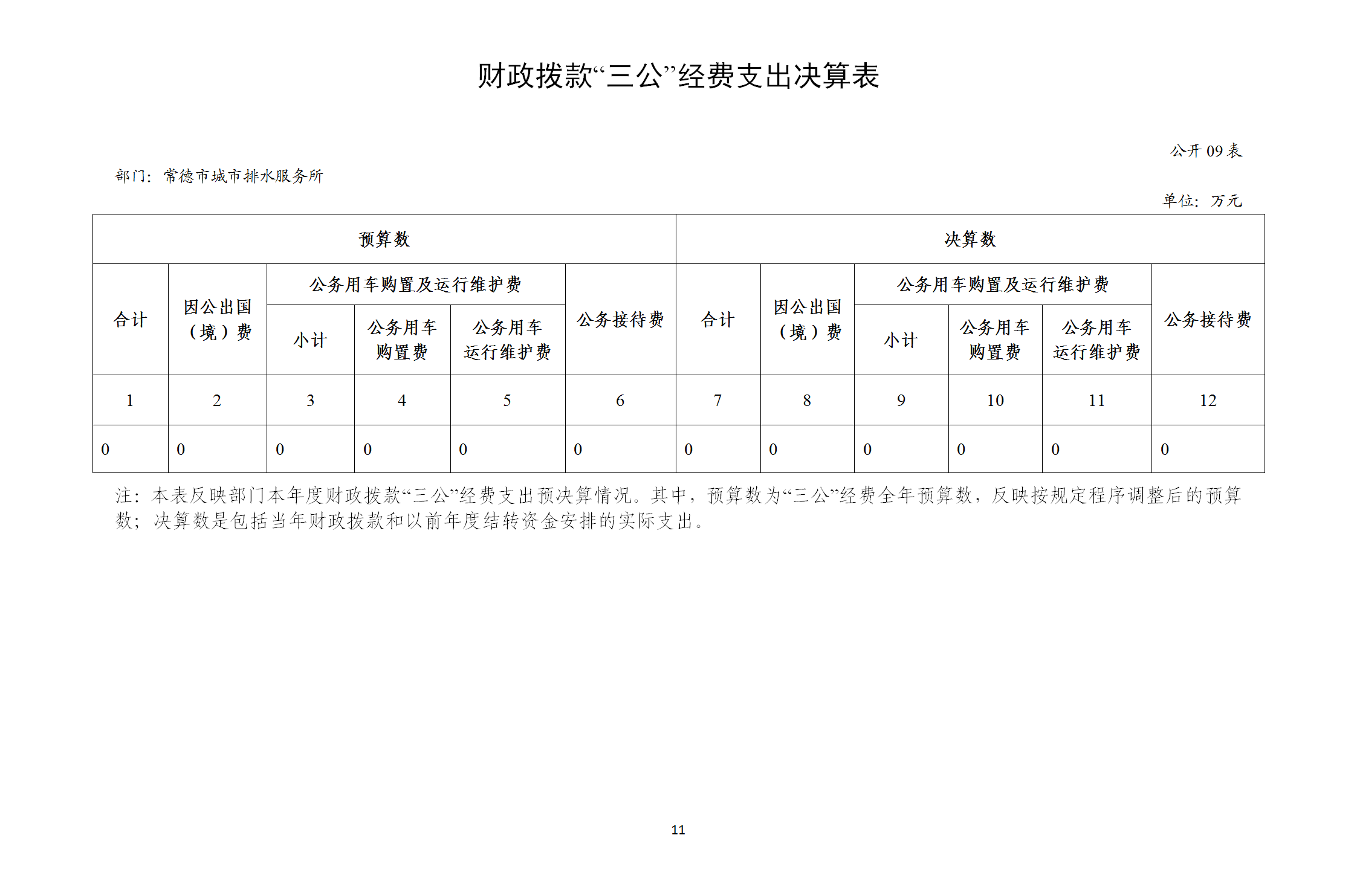 2.公务用车购置费及运行维护费支出预算为0万元,支出决算为0万元,由于预算数为零无法计算百分比,其中: