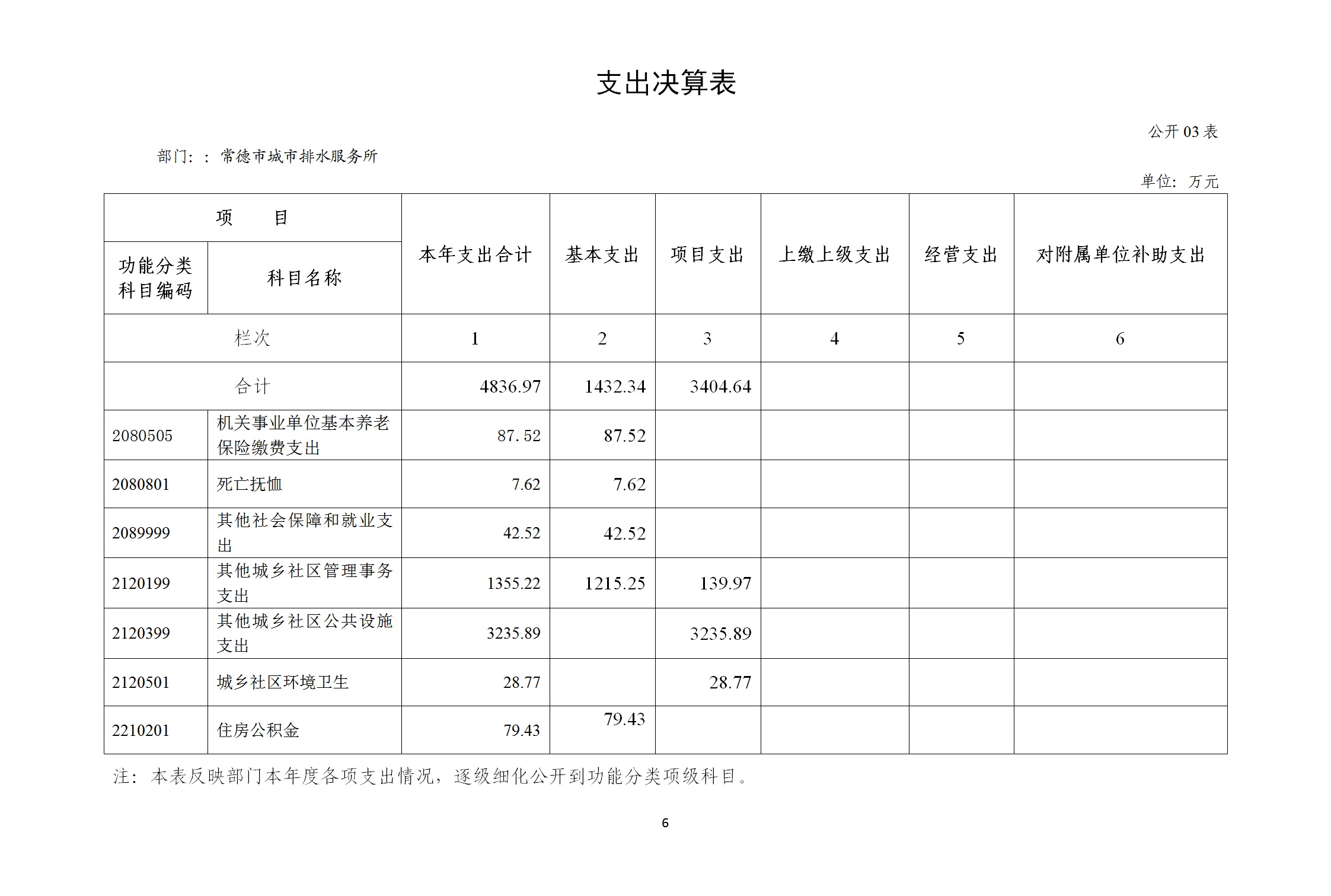 2024年度支出合计4836.97万元,其中:基本支出1432.34万元,占29.6%;项目支出3404.64万元,占70.4%;上缴上级支出0万元,占0%;经营支出0万元,占0%;对附属单位补助支出0万元,占0%。