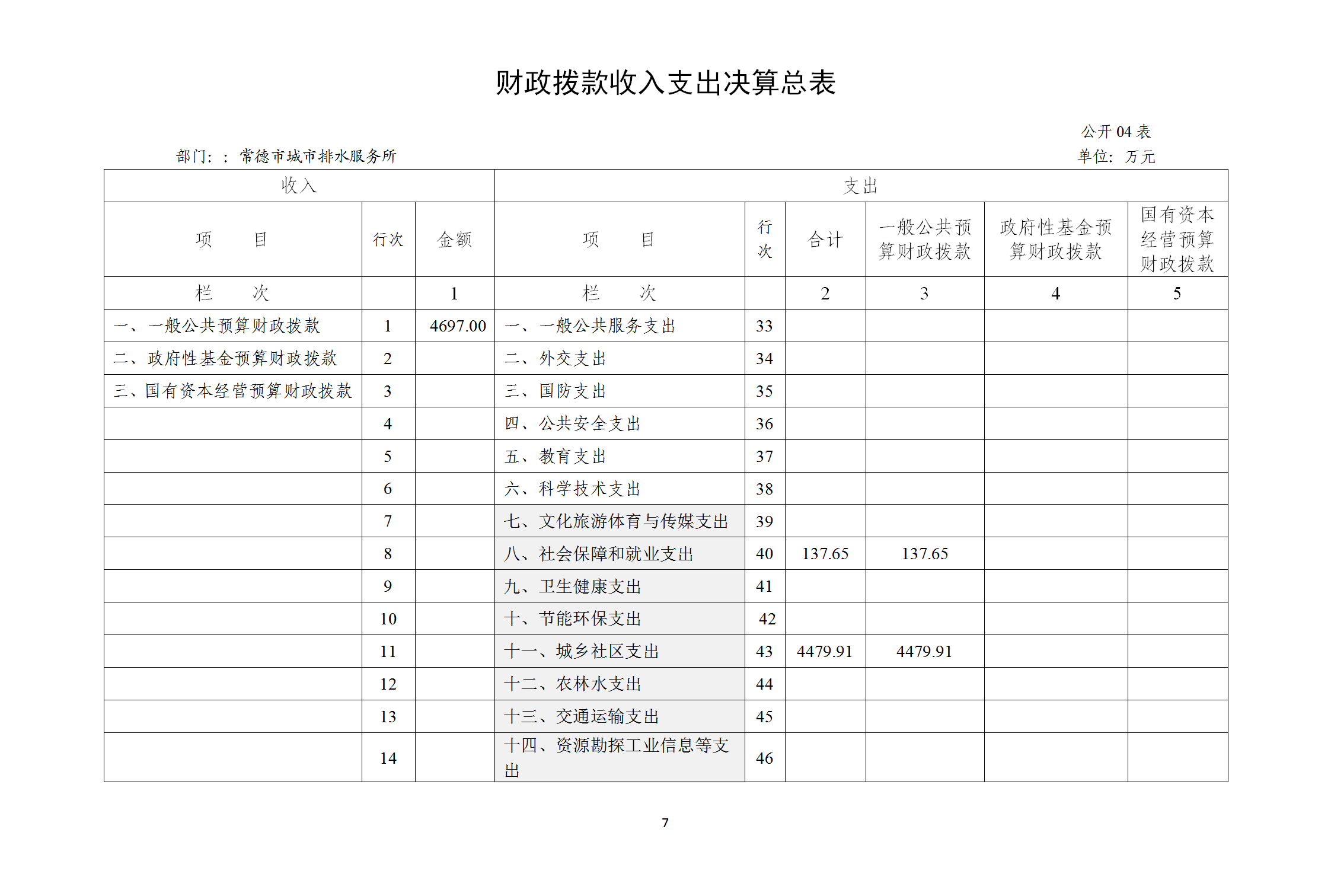 四、财政拨款收入支出决算总表