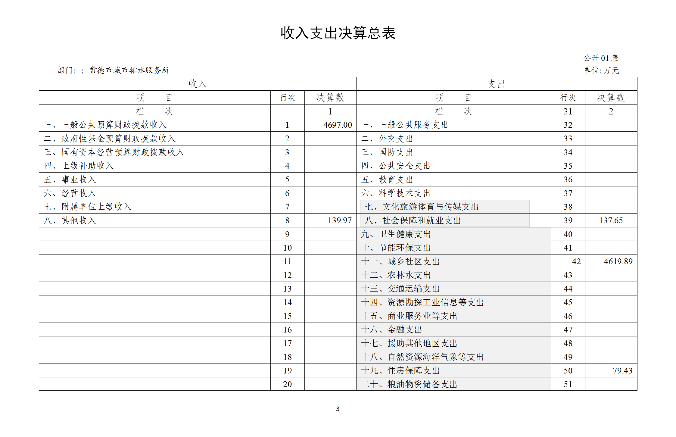 一、收入支出决算总表
