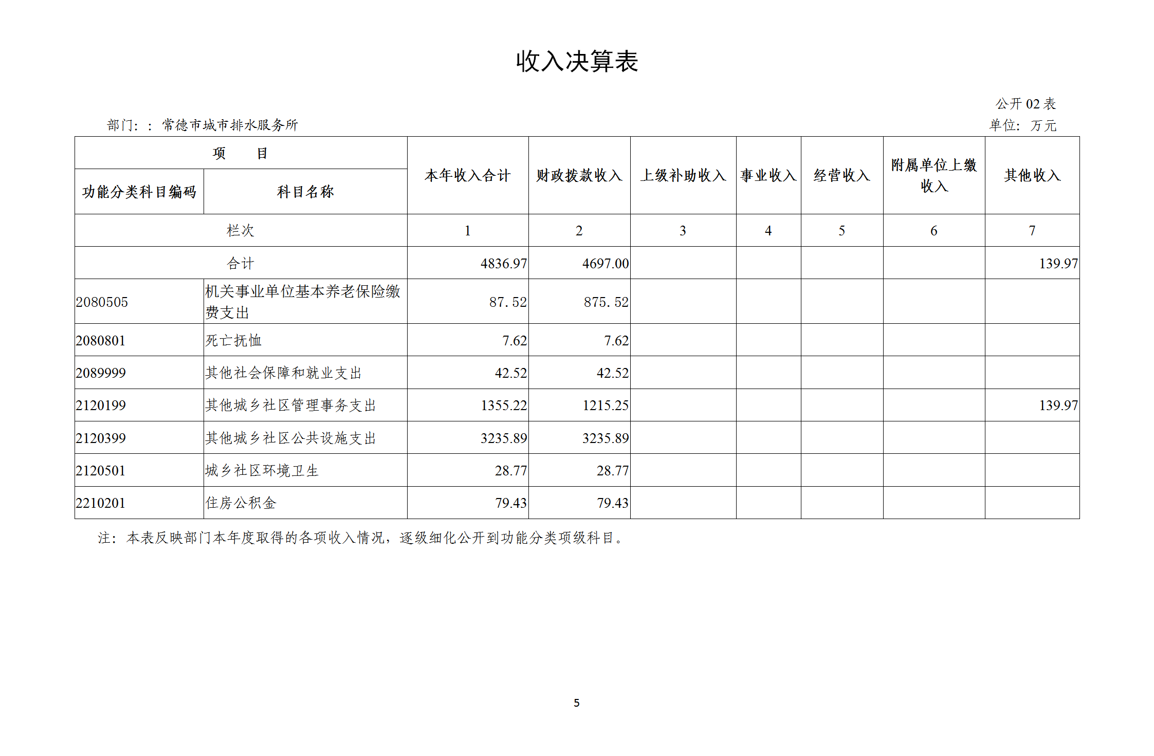 二、收入决算表