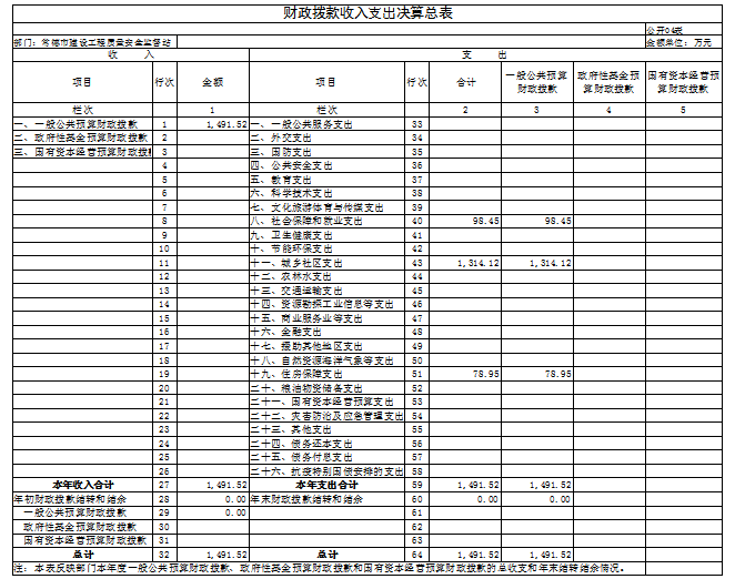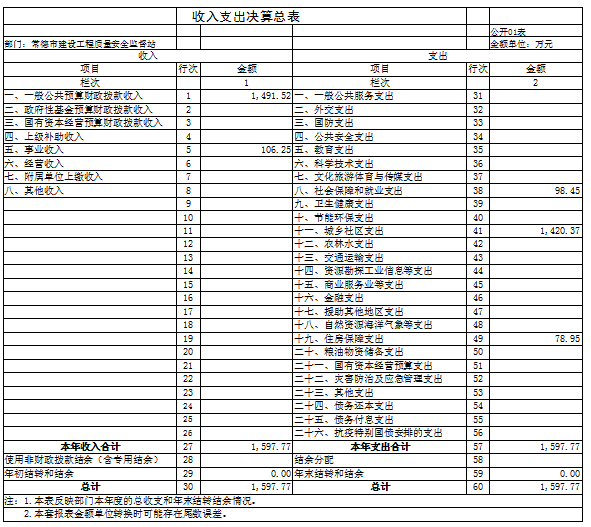 一、收入支出决算总表