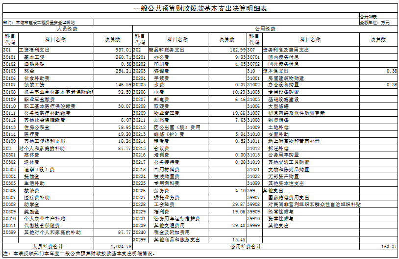 公用经费163.37万元,占基本支出的13.75%,主要包括办公费、印刷费、咨询费、手续费、水费、电费、邮电费、取暖费、物业管理费、差旅费、因公出国(境)费用、维修(护)费、租赁费、会议费、培训费、公务接待费、专用材料费、劳务费、委托业务费、工会经费、福利费、公务用车运行维护费、其他交通费用、其他商品和服务支出、办公设备购置、专用设备购置、信息网络及软件购办公费、印刷费、咨询费、手续费、水费、电费、邮电费、取暖费、物业管理费、差旅费、因公出国(境)费用、维修(护)费、租赁费、会议费、培训费、公务接待费、专用材料费、劳务费、委托业务费、工会经费、福利费、公务用车运行维护费、其他交通费用、其他商品和服务支出、办公设备购置、专用设备购置、信息网络及软件购置更新、公务用车购置、其他交通工具购置、文物和陈列品购置、无形资产购置、其他资本性支出、赠与。