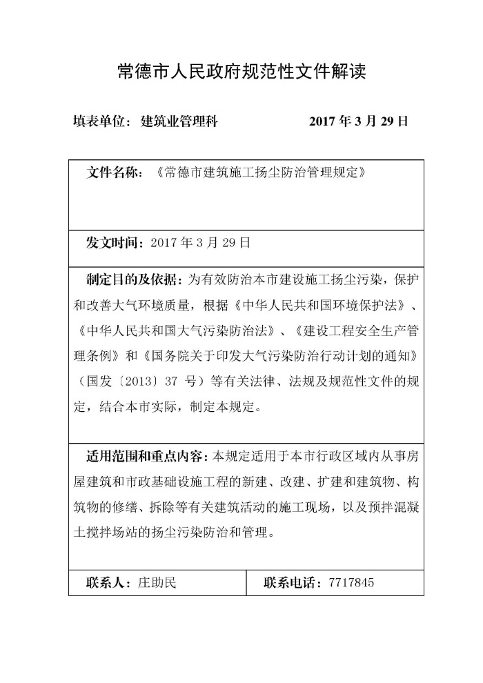 《常德市建筑施工扬尘防治管理规定》政策解读