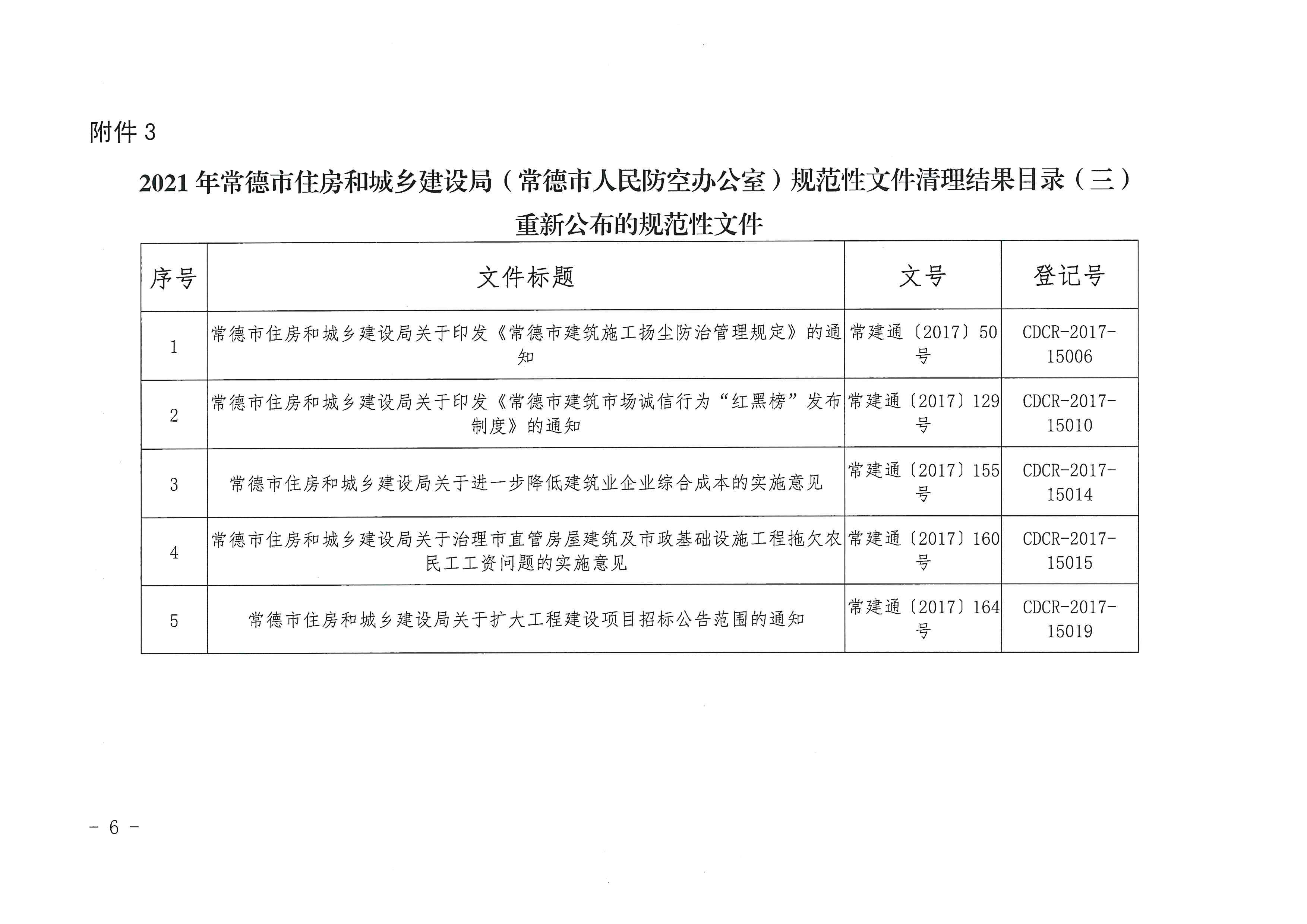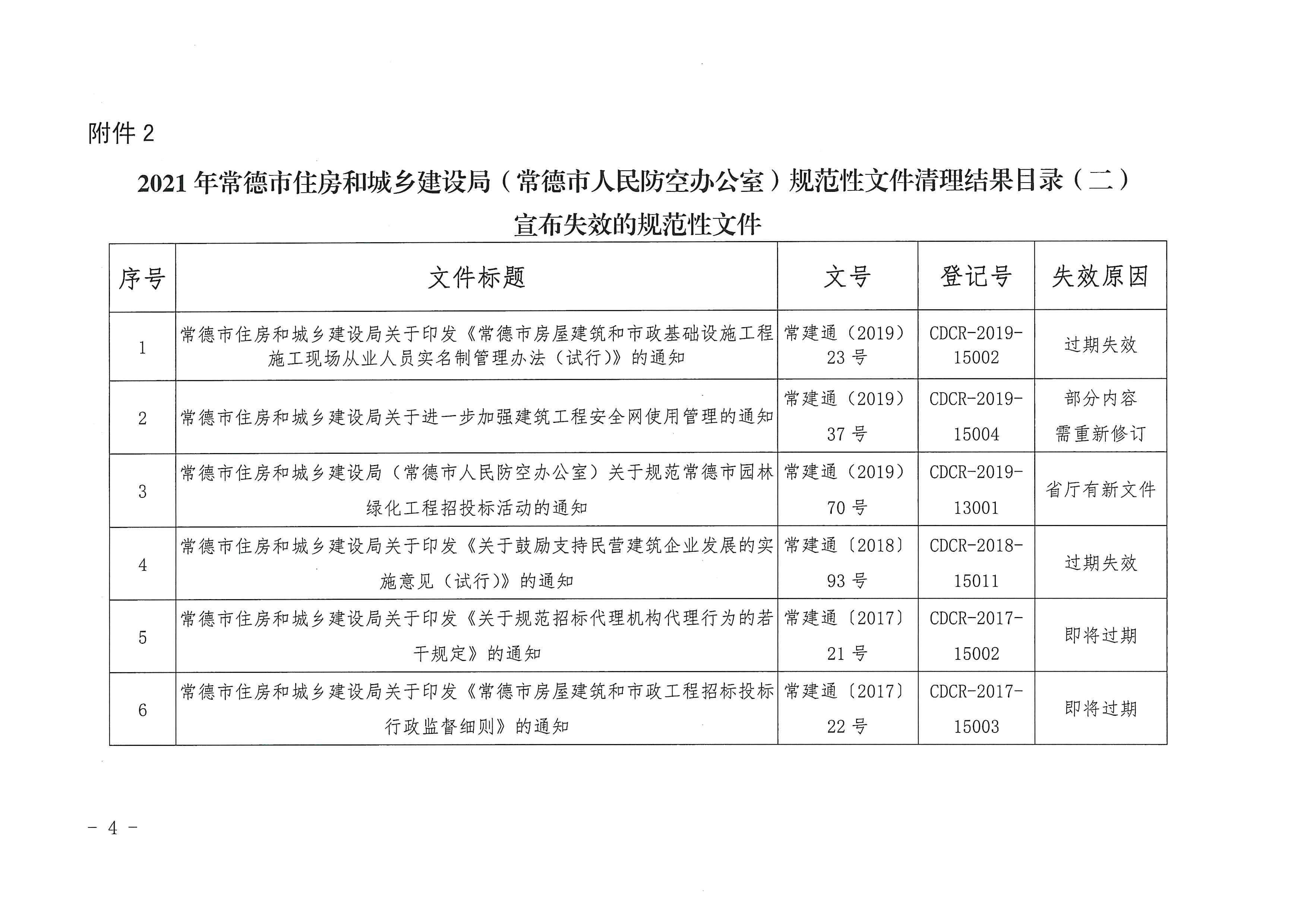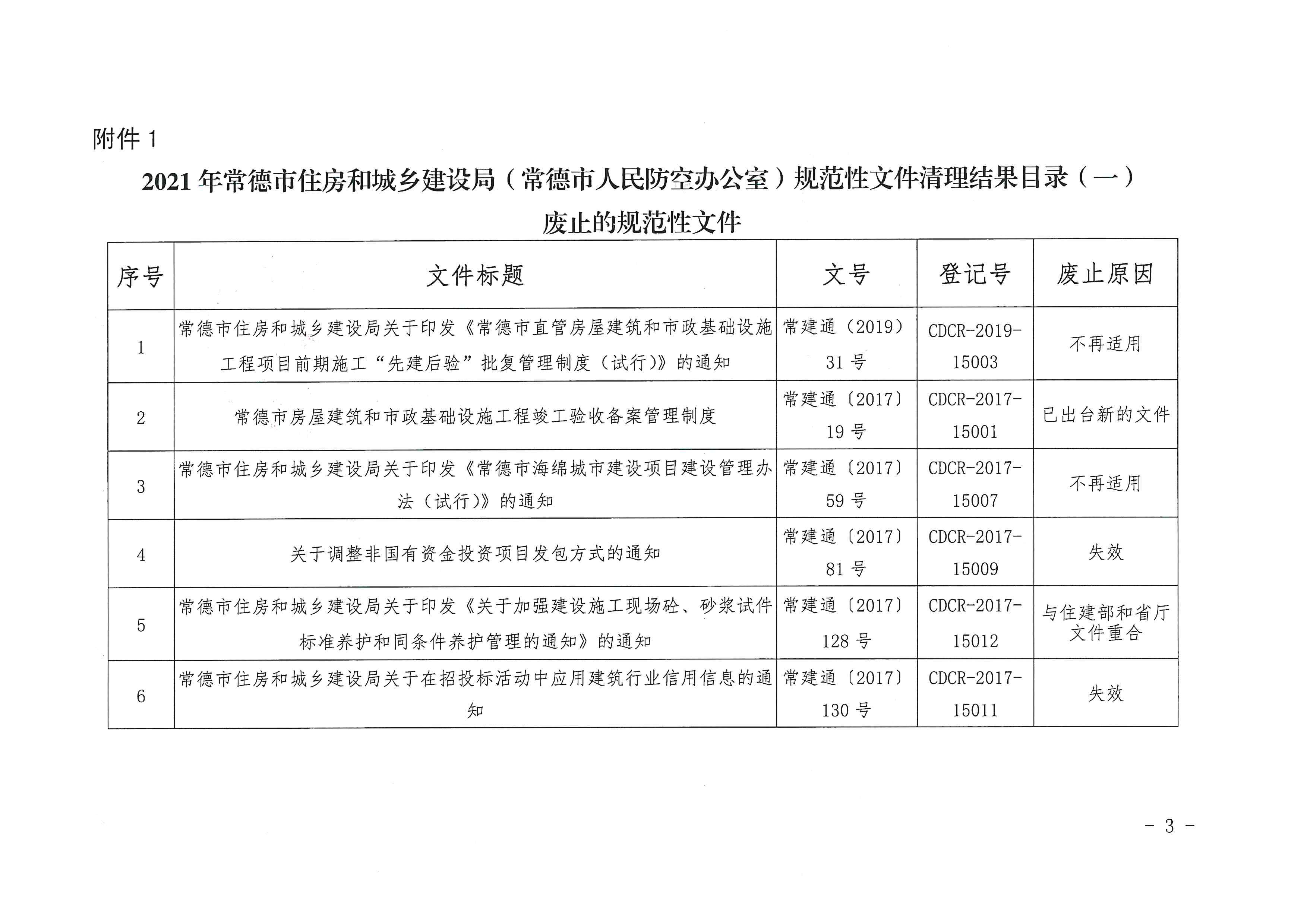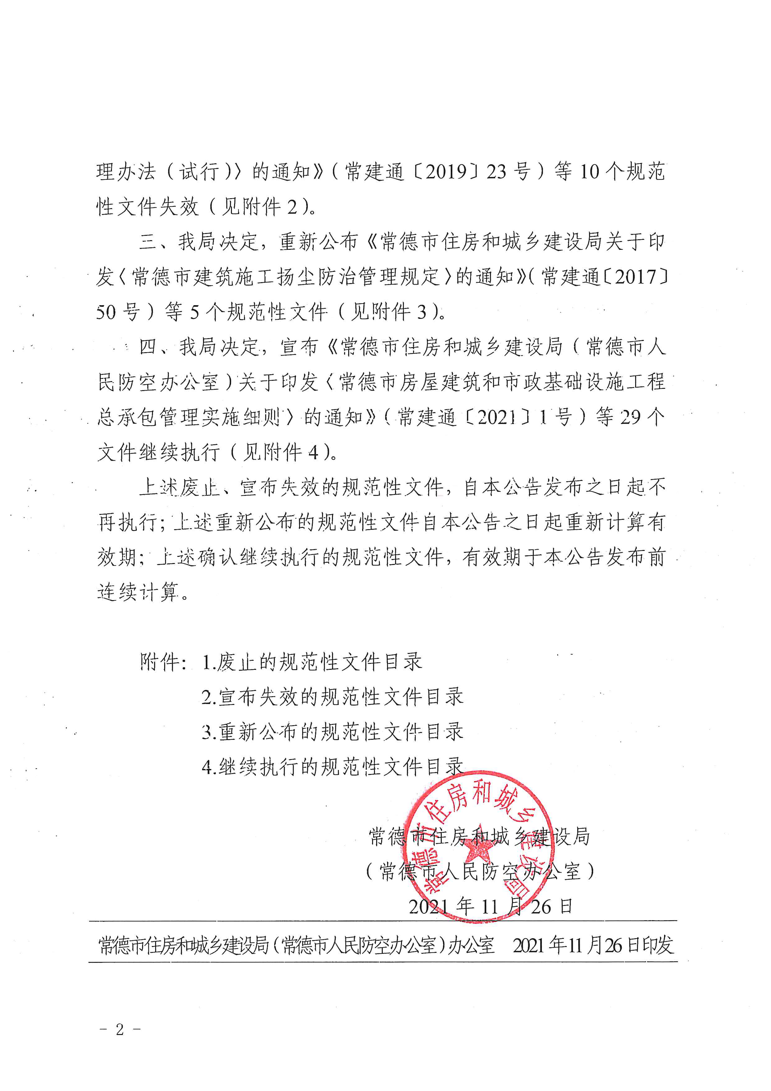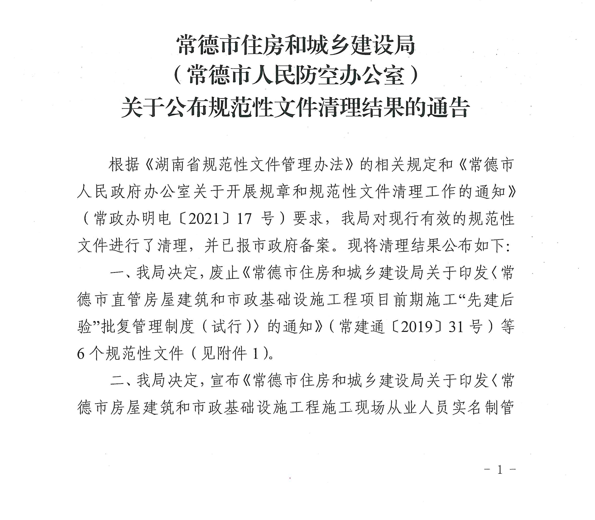 常德市住房和城乡建设局(常德市人民防空办公室)关于公布规范性文件清理结果的通告