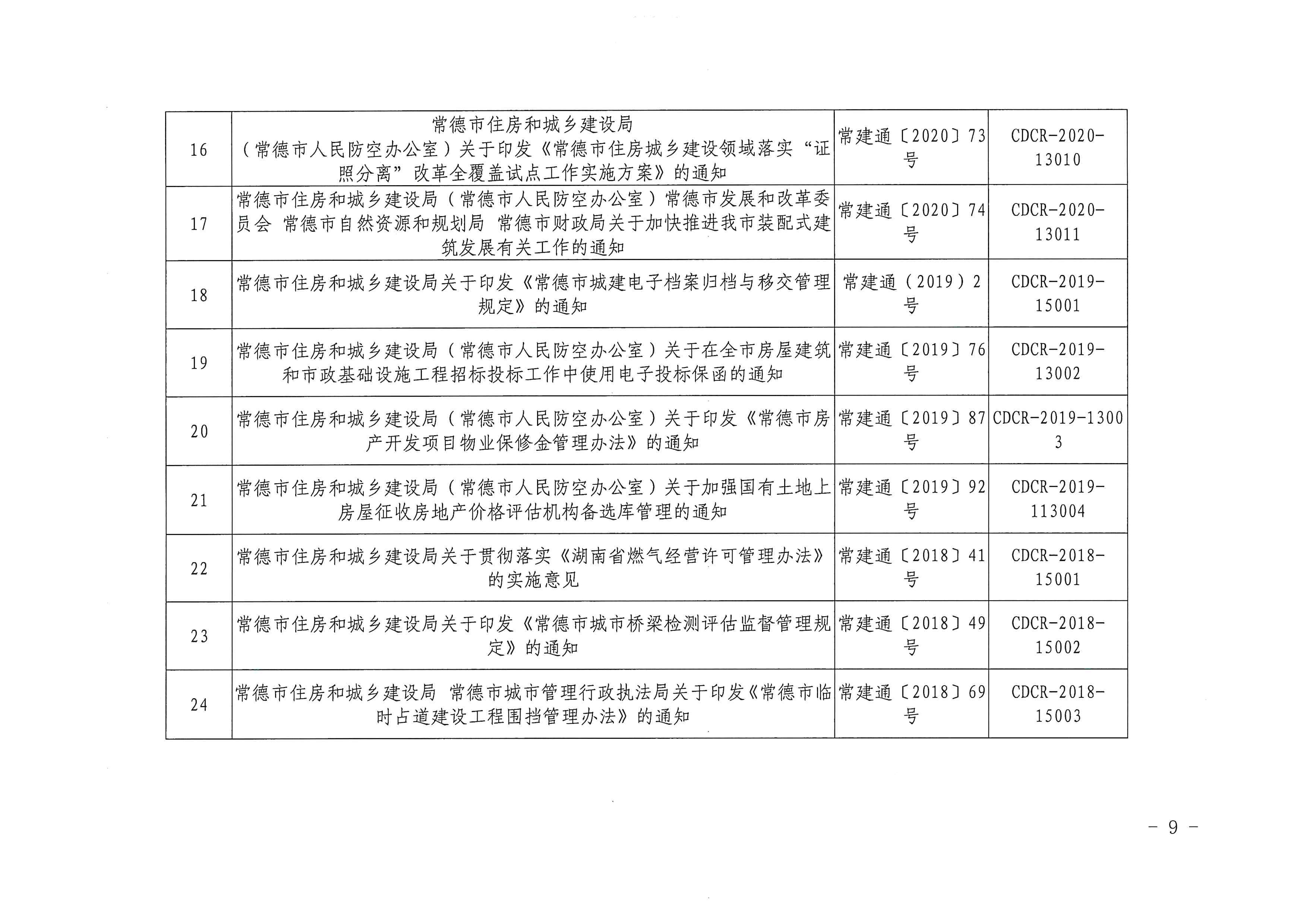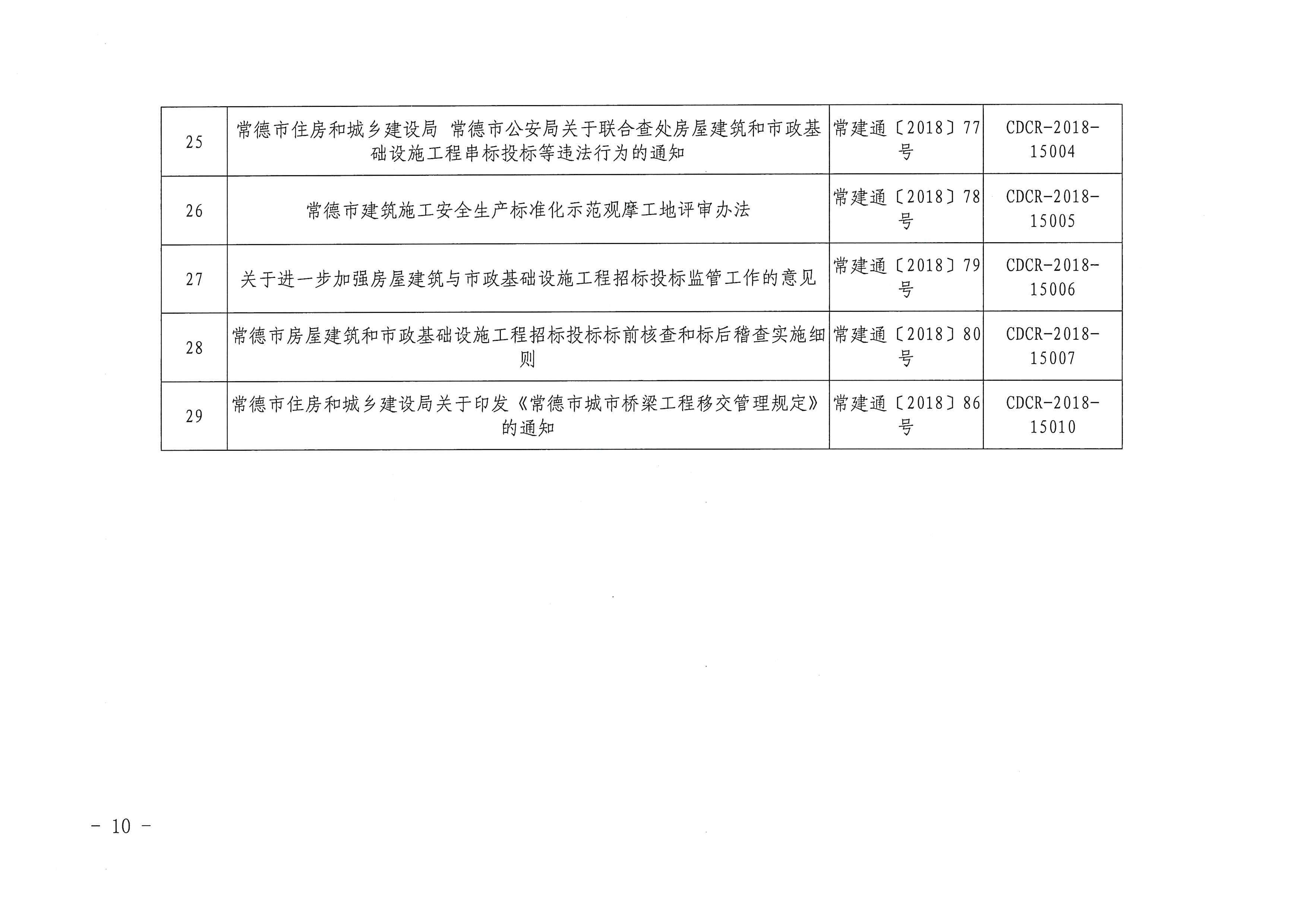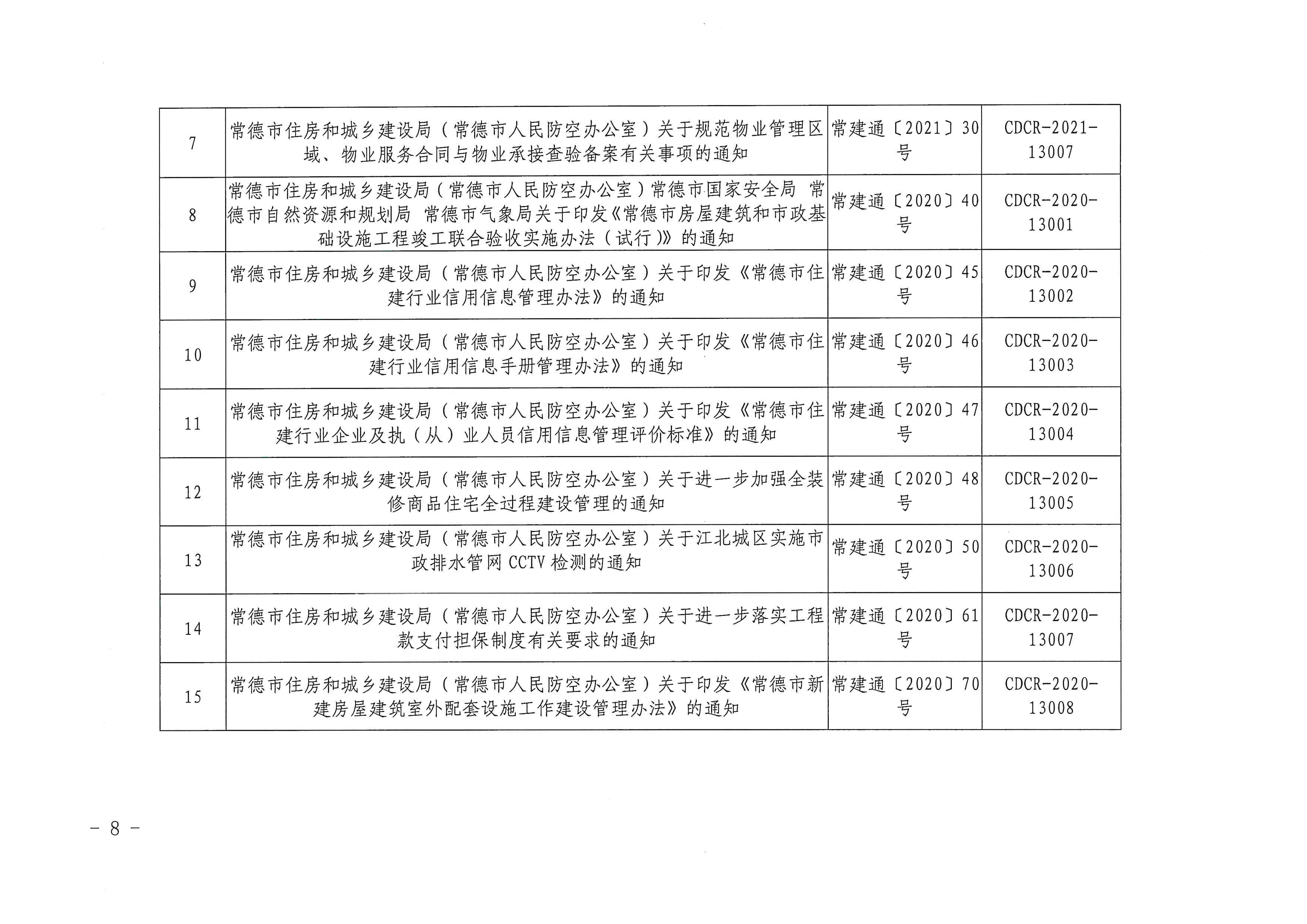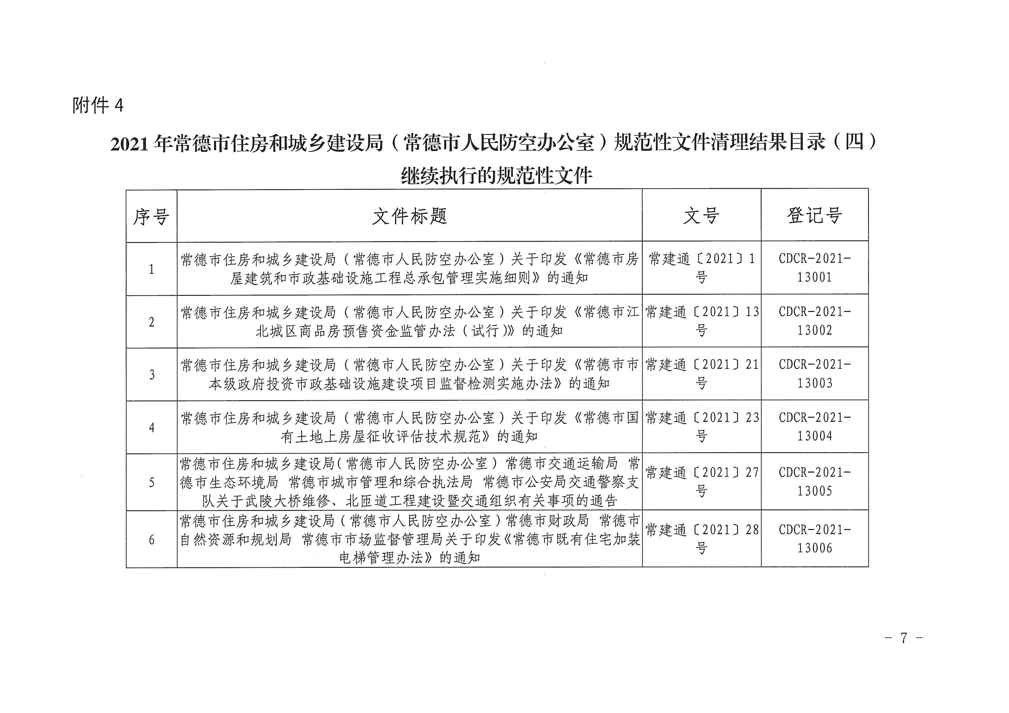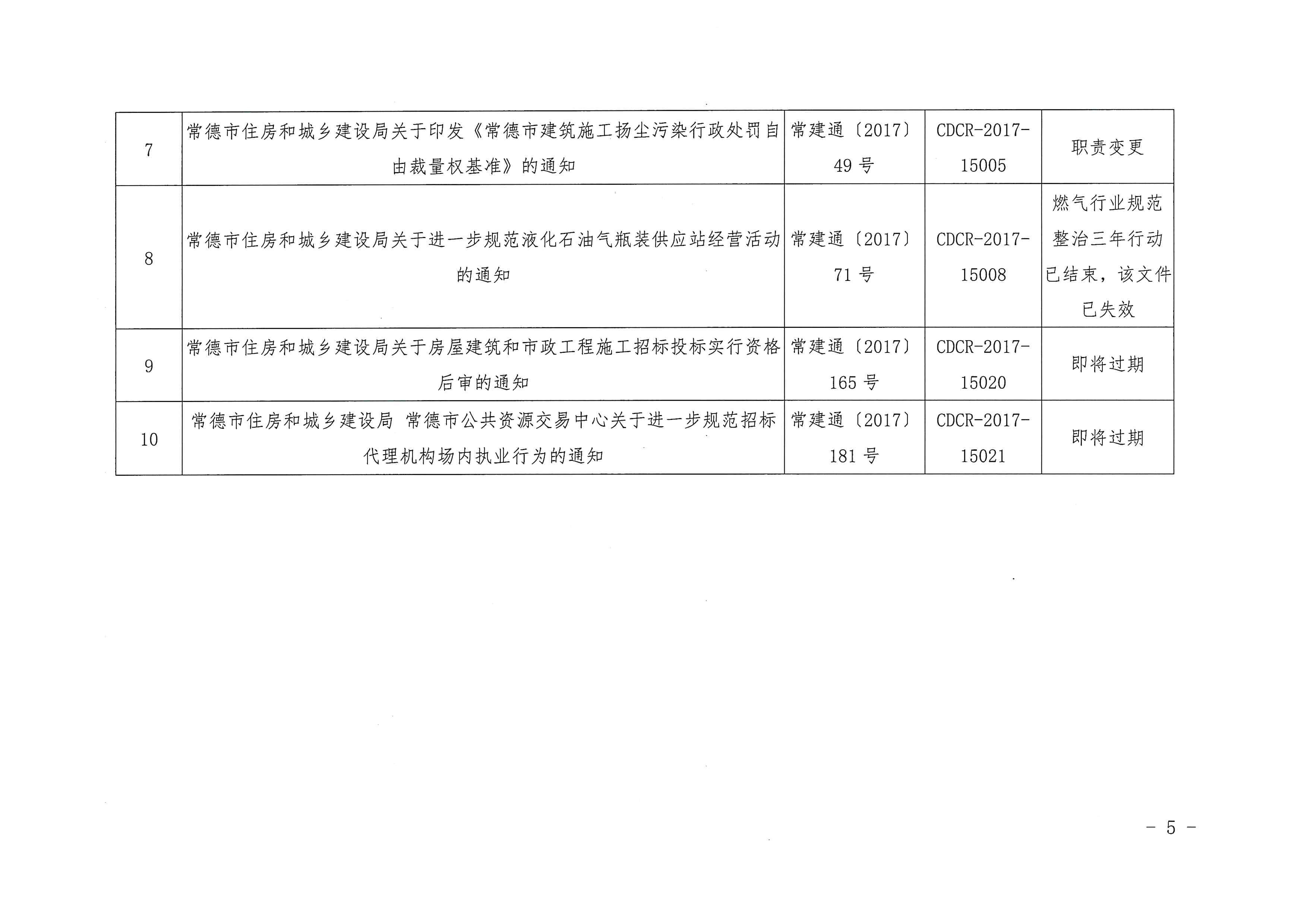 常德市住房和城乡建设局(常德市人民防空办公室)关于公布规范性文件清理结果的通告