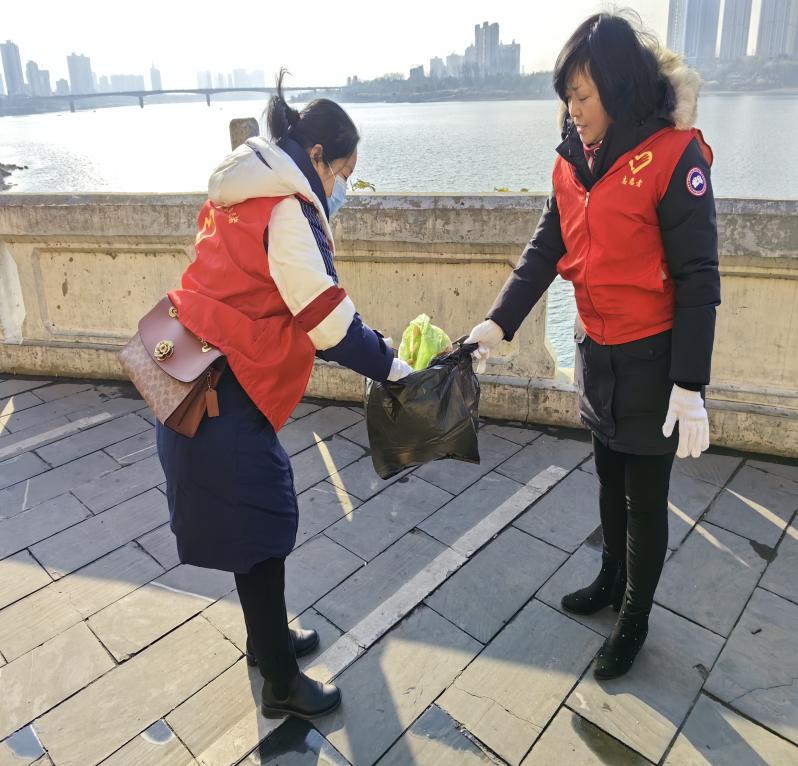 最后,第二党支部党员同志走出活动室,参观了常德诗墙《名贤题咏》篇章,一睹中国诗墙的巍峨风采。参观结束后,第二党支部党员志愿者还开展了“做好垃圾分类,共护诗墙美貌”活动,通过发放垃圾分类手册和清扫周边垃圾等形式,号召大家爱护诗墙、保护环境。