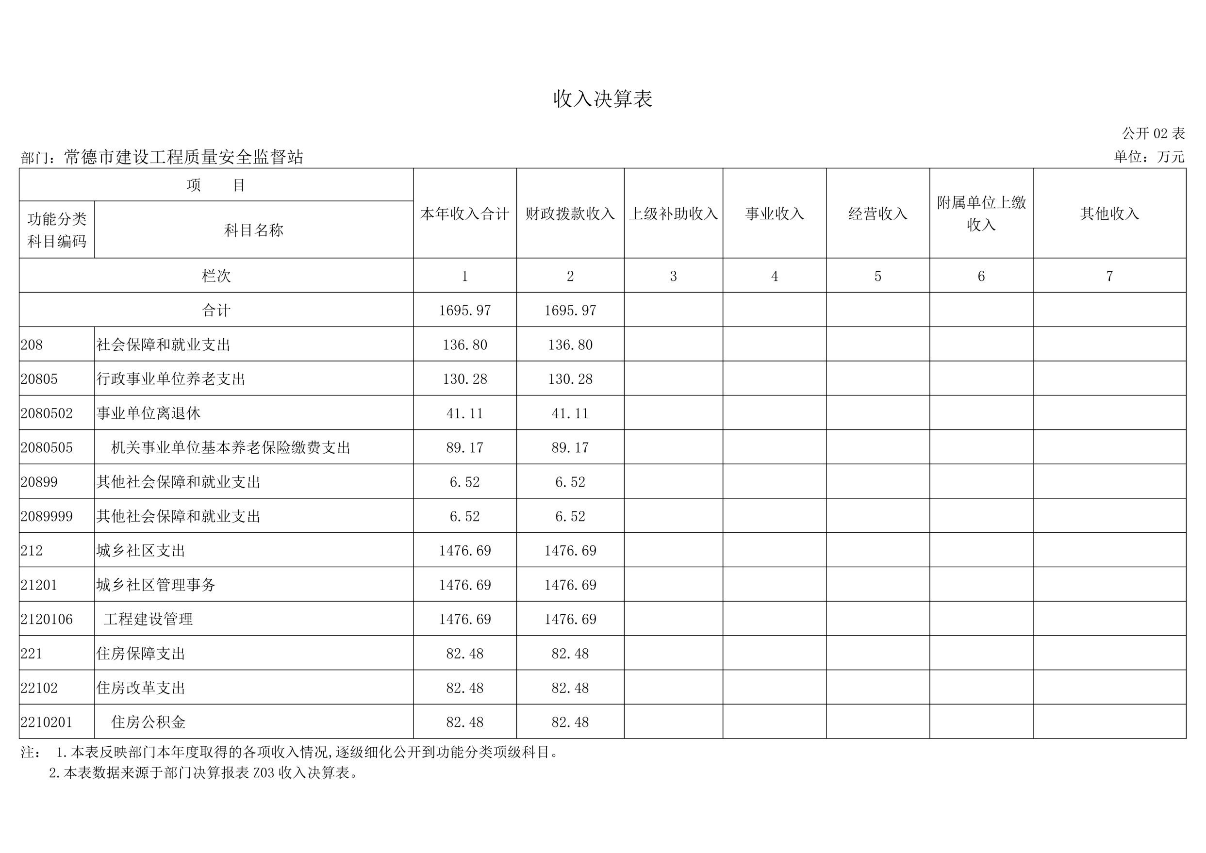 二、收入决算表