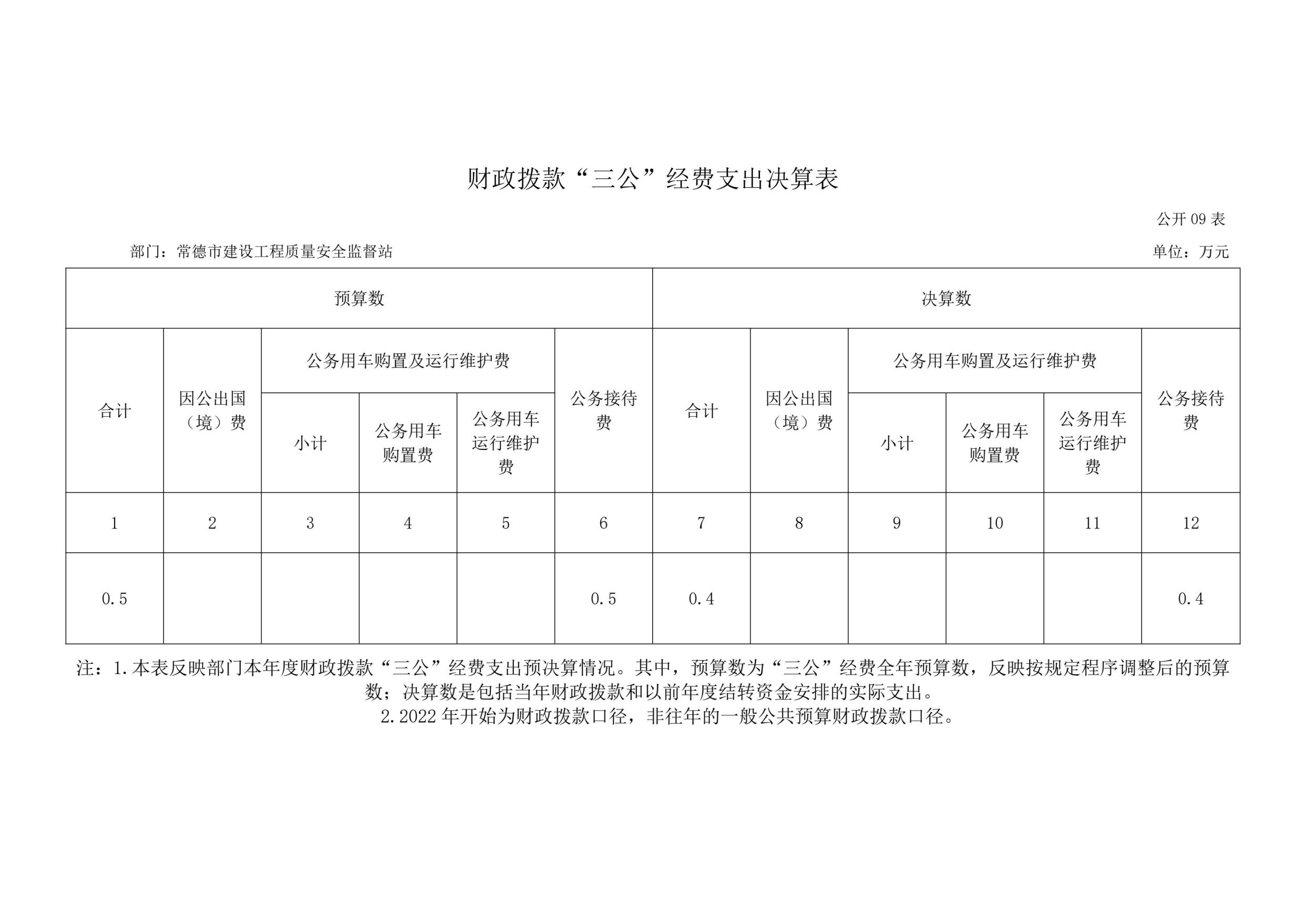 2023年度“三公”经费财政拨款支出决算中,公务接待费支出决算0.4万元,占100%,因公出国(境)费支出决算0万元,占0%,公务用车购置费及运行维护费支出决算0万元,占0%。其中: