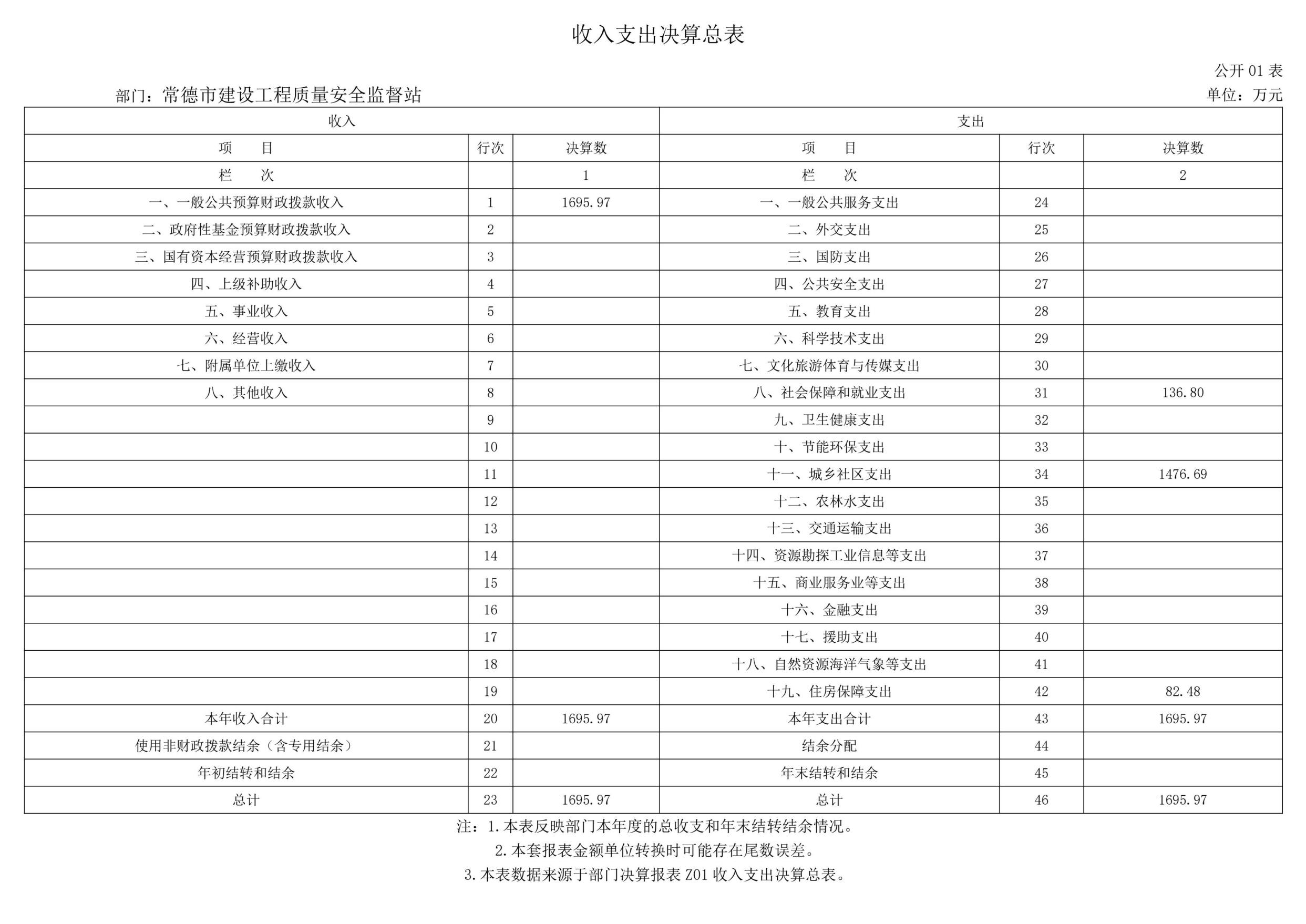一、收入支出决算总表