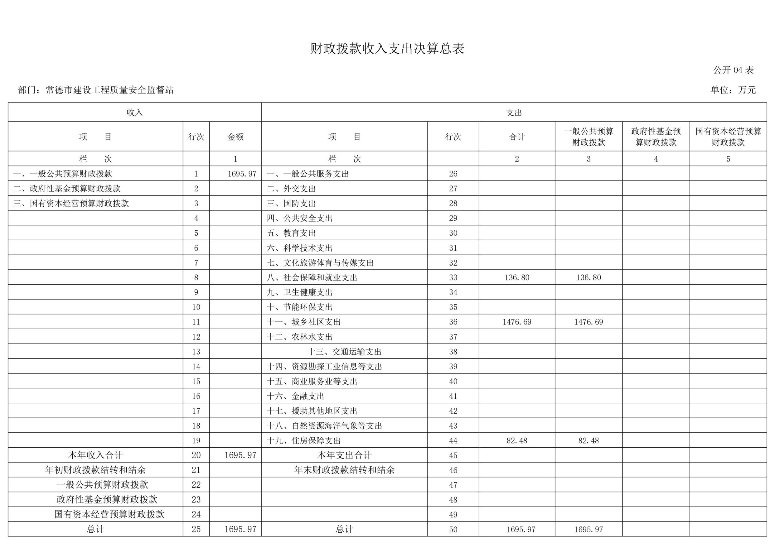 部门决算表