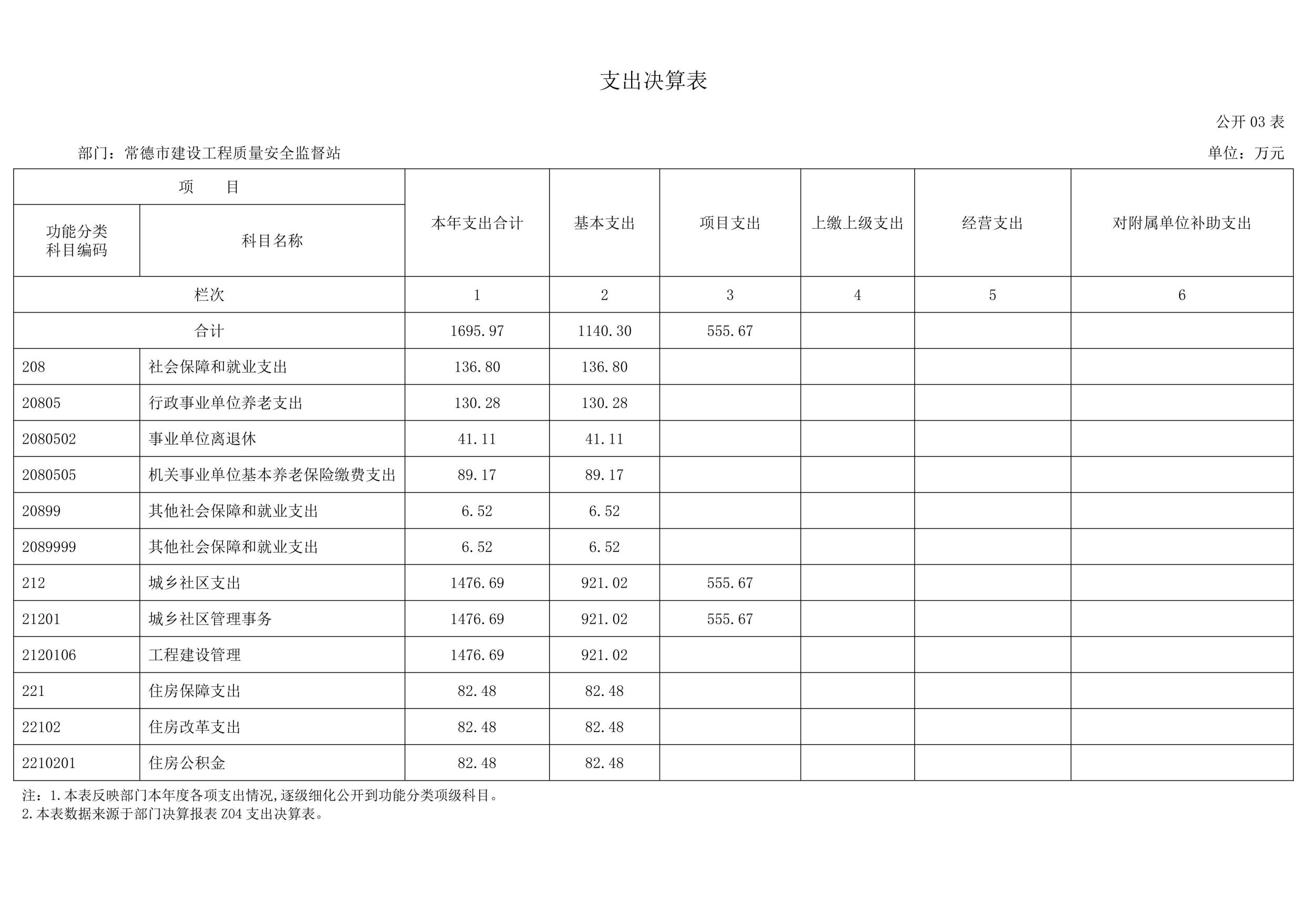 2023年度支出合计1695.97万元,其中:基本支出1140.30万元,占67.24%;项目支出555.67万元,占32.76%;上缴上级支出0万元,占0%;经营支出0万元,占0%;对附属单位补助支出0万元,占0%。
