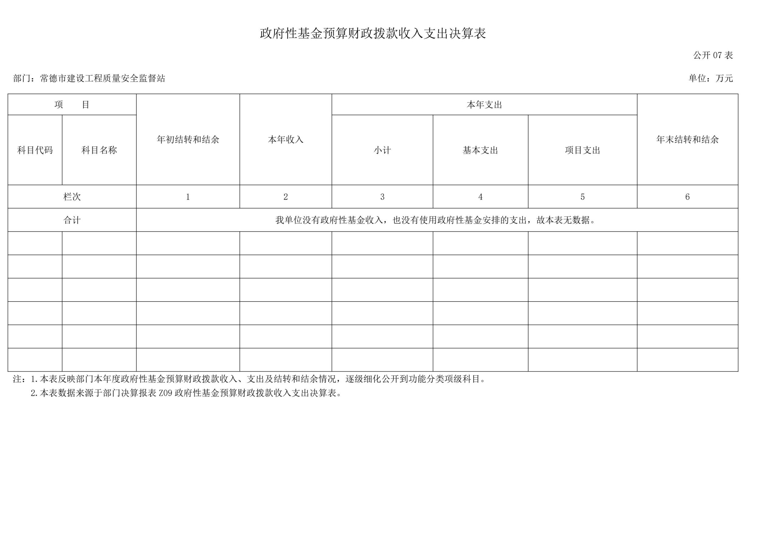 七、政府性基金预算财政拨款收入支出决算表