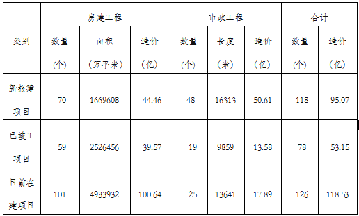 2023年新报建房建项目70个,面积1669608m²,造价44.46亿;已竣工项目59个,面积2526456m²,造价39.57亿;目前在建项目101个,4933932m²,造价100.64亿。新报建市政工程48个,长度16313米,造价50.61亿;已竣工19个,长度9859米,造价13.58亿;目前在建项目25个,造价17.89亿。全年未发生一起较大及以上安全生产责任事故,在建项目质量安全形势平稳可控。2023年被省住建厅表彰为全省工作突出监督机构;根治拖欠农民工工资工作位列全省第一,全国第六;奥园·誉景湾为国家专项借款资金下达以来湖南“保交楼”项目中首个正式交房项目,年度绩效目标基本完成,社会公众满意度大于等于90%。