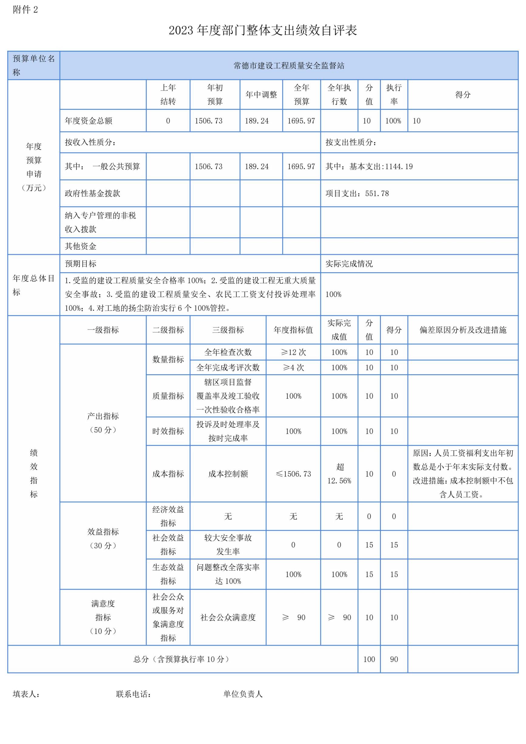 2.我单位将按规定在主管部门官方网站公开绩效自评的相关信息,接受社会监督,保证数据真实、完整、准确。对绩效自评工作中发现的问题及时整改,解决好绩效评价管理中存在的问题,提高工作效能。2023年我单位整体绩效评价自评分为90分。