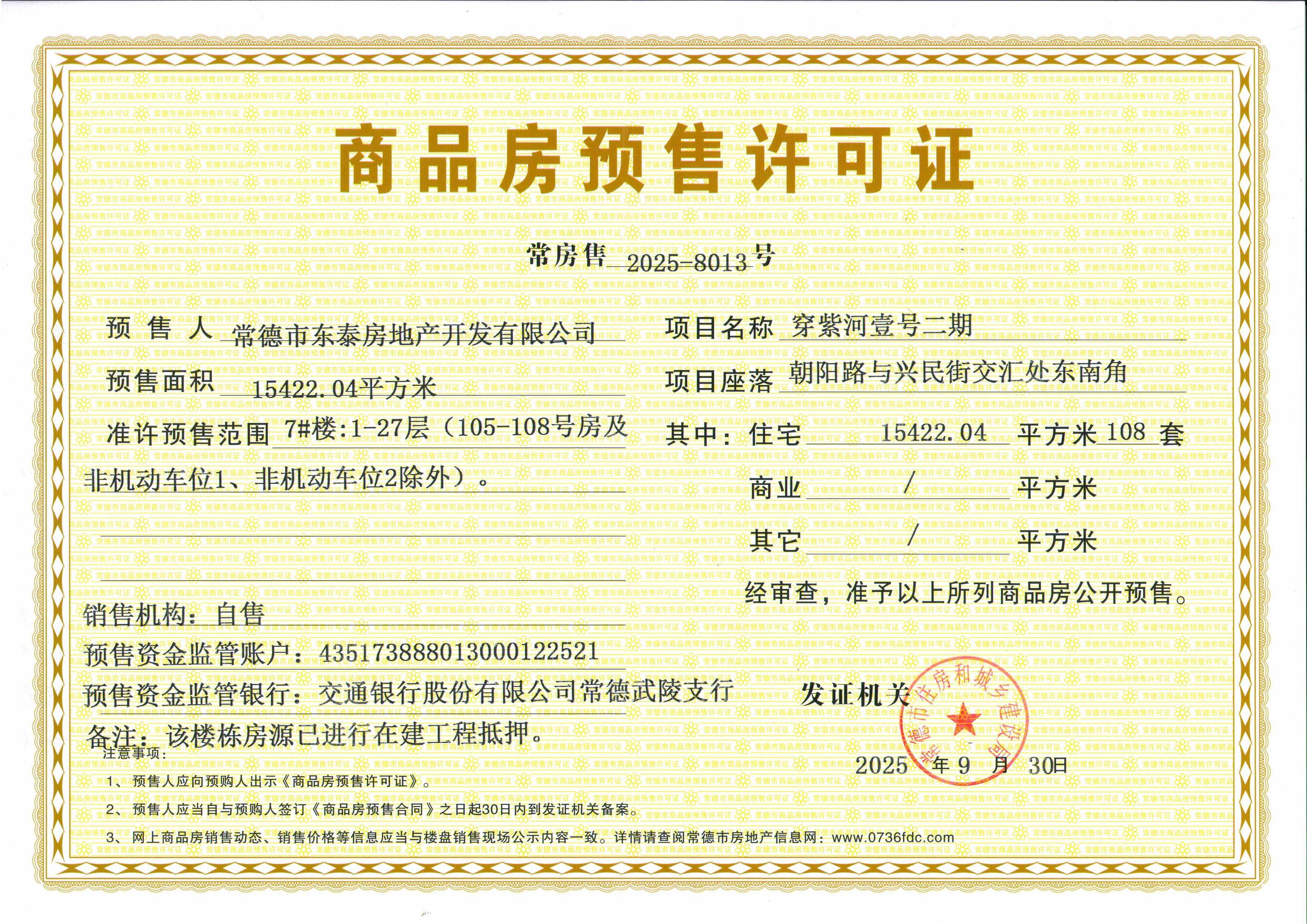 商品房预售许可证--常房售2025-8013号 穿紫河壹号二期