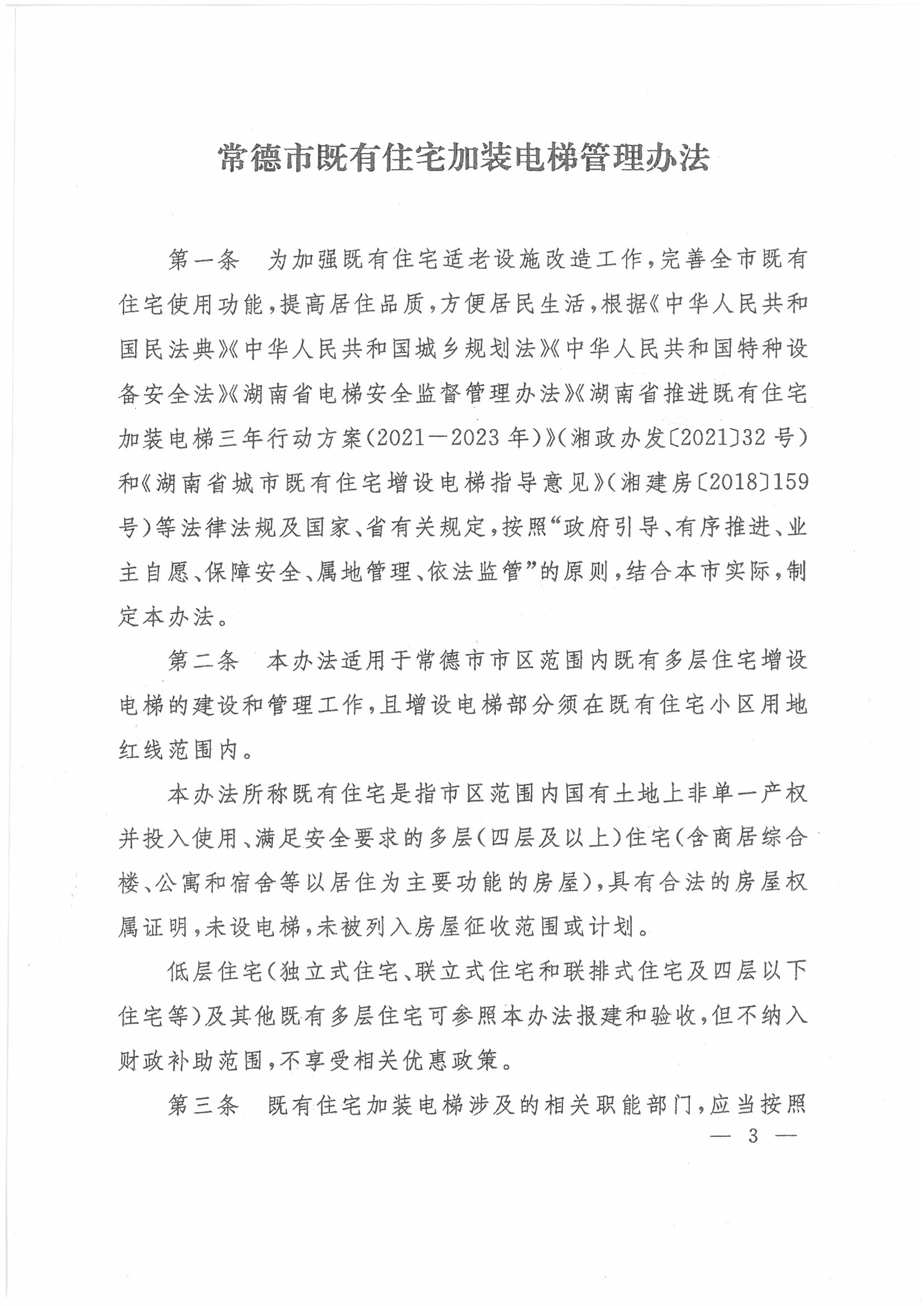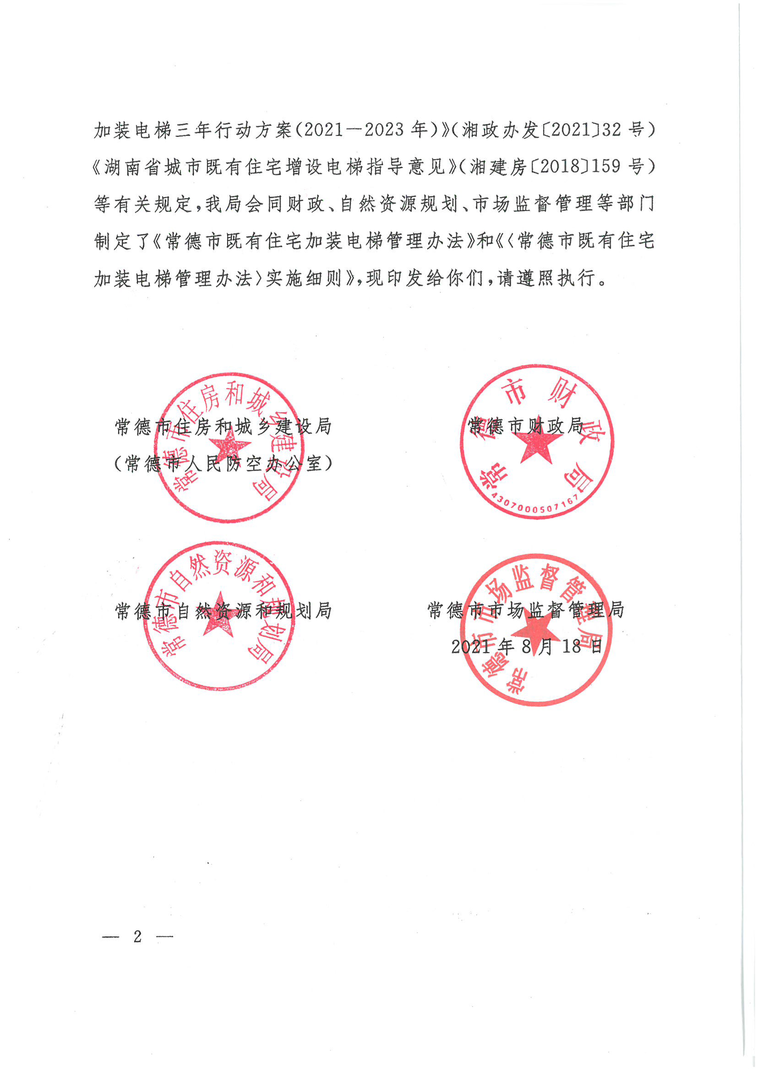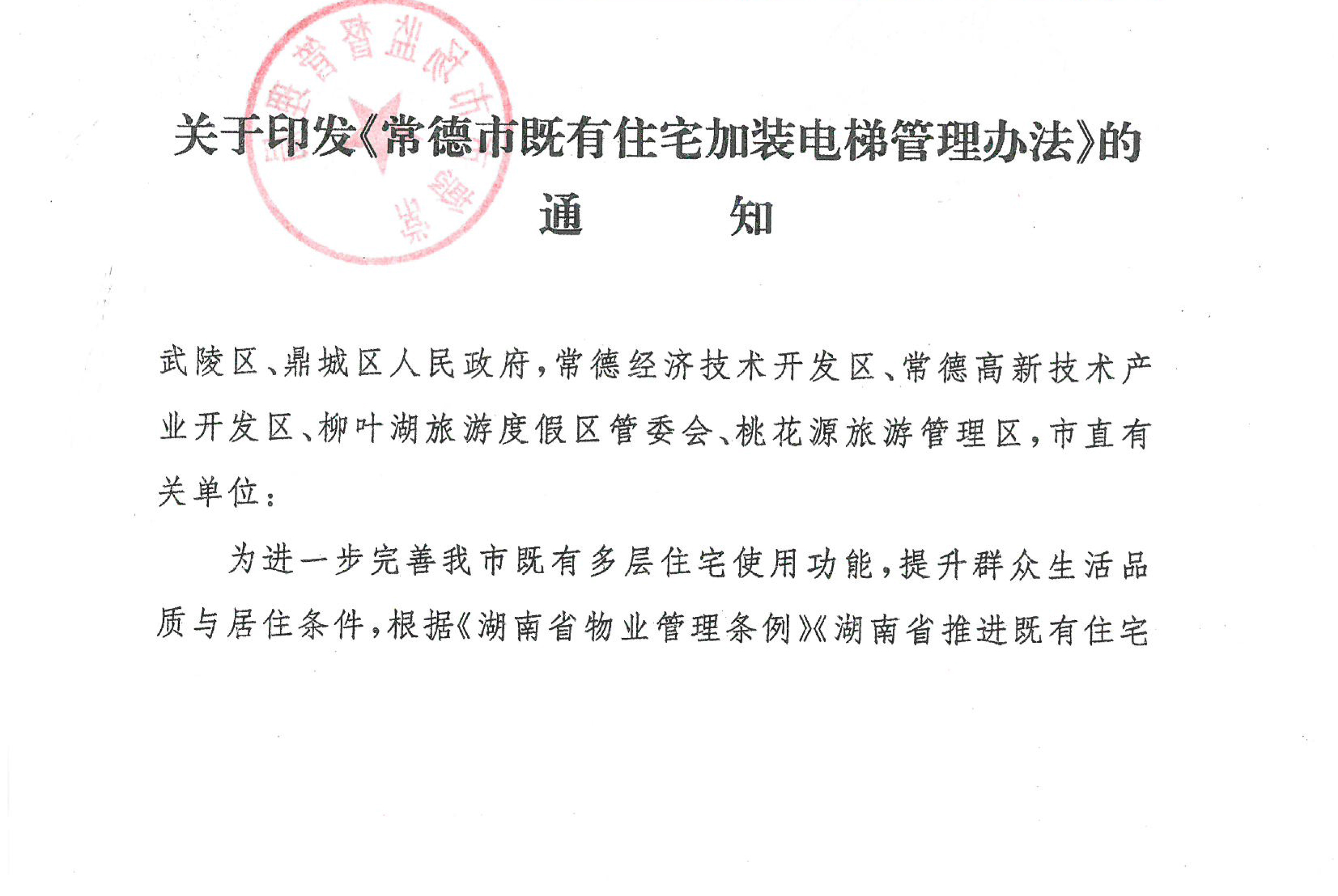 关于印发《常德市既有住宅加装电梯管理办法》的通知