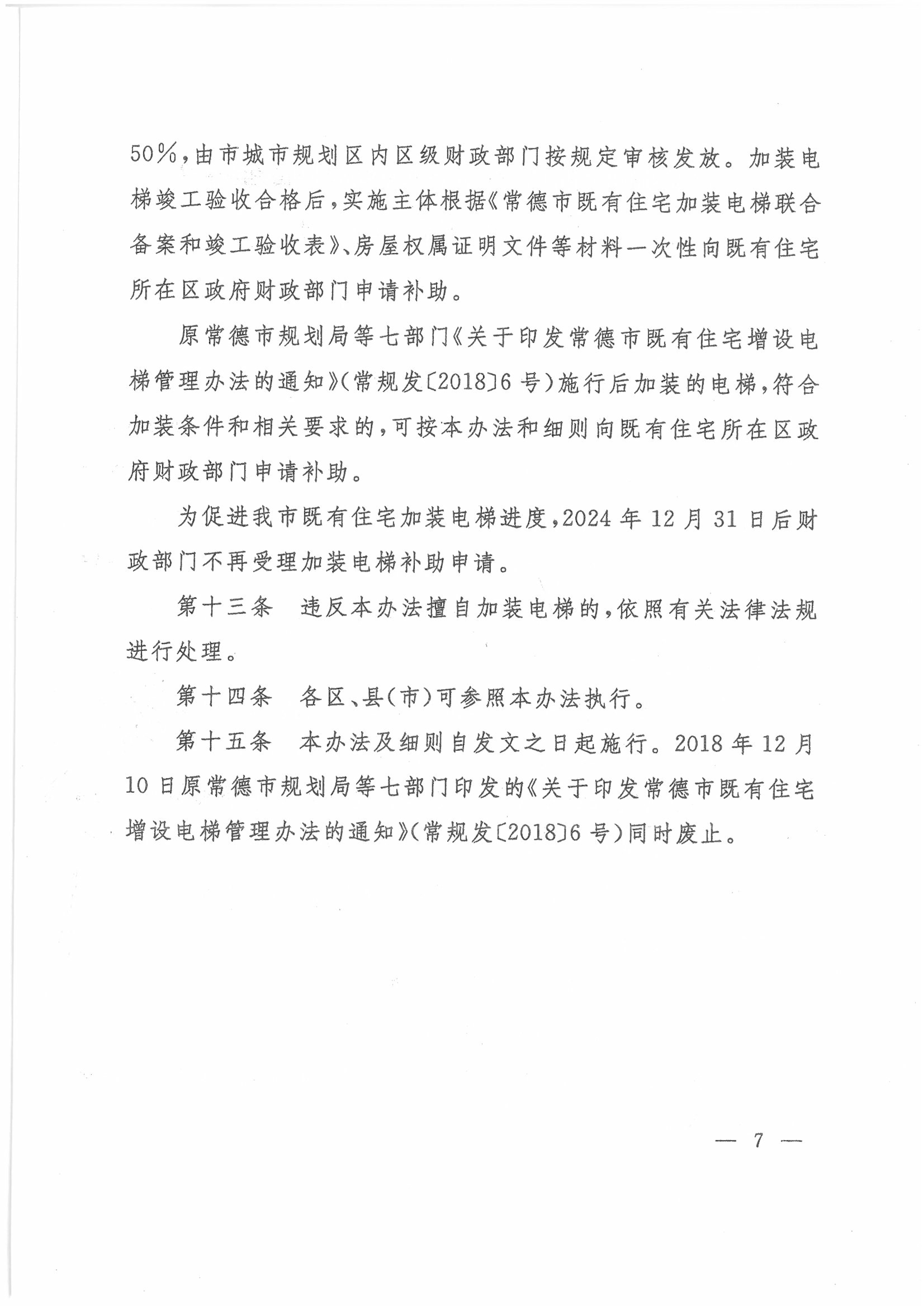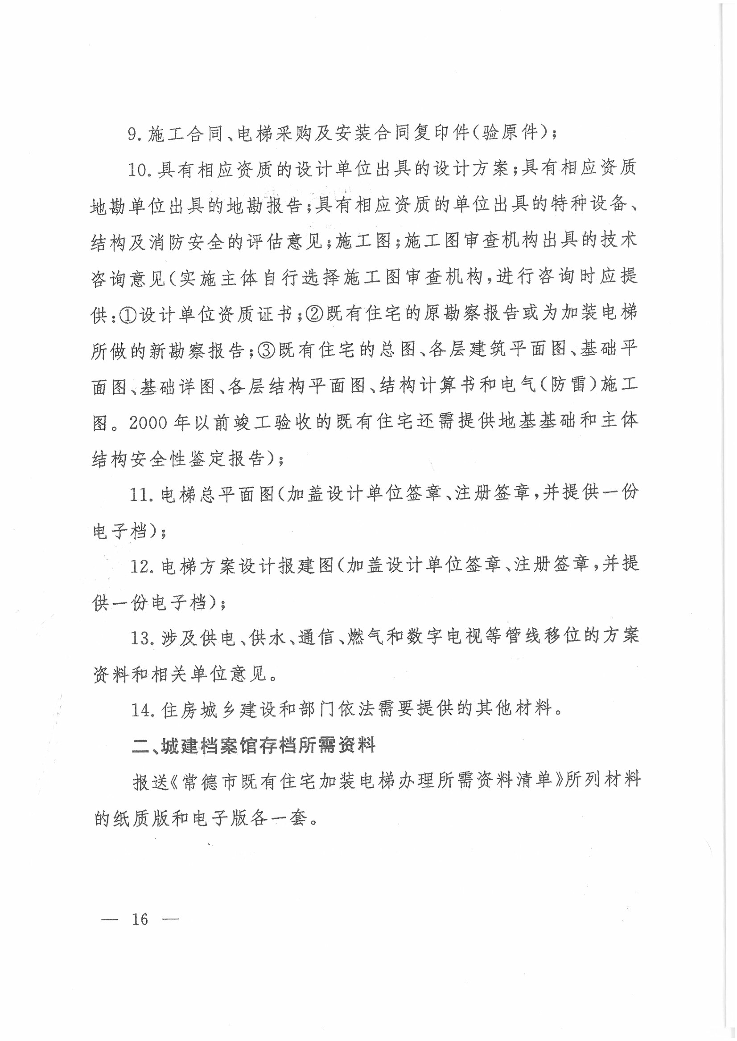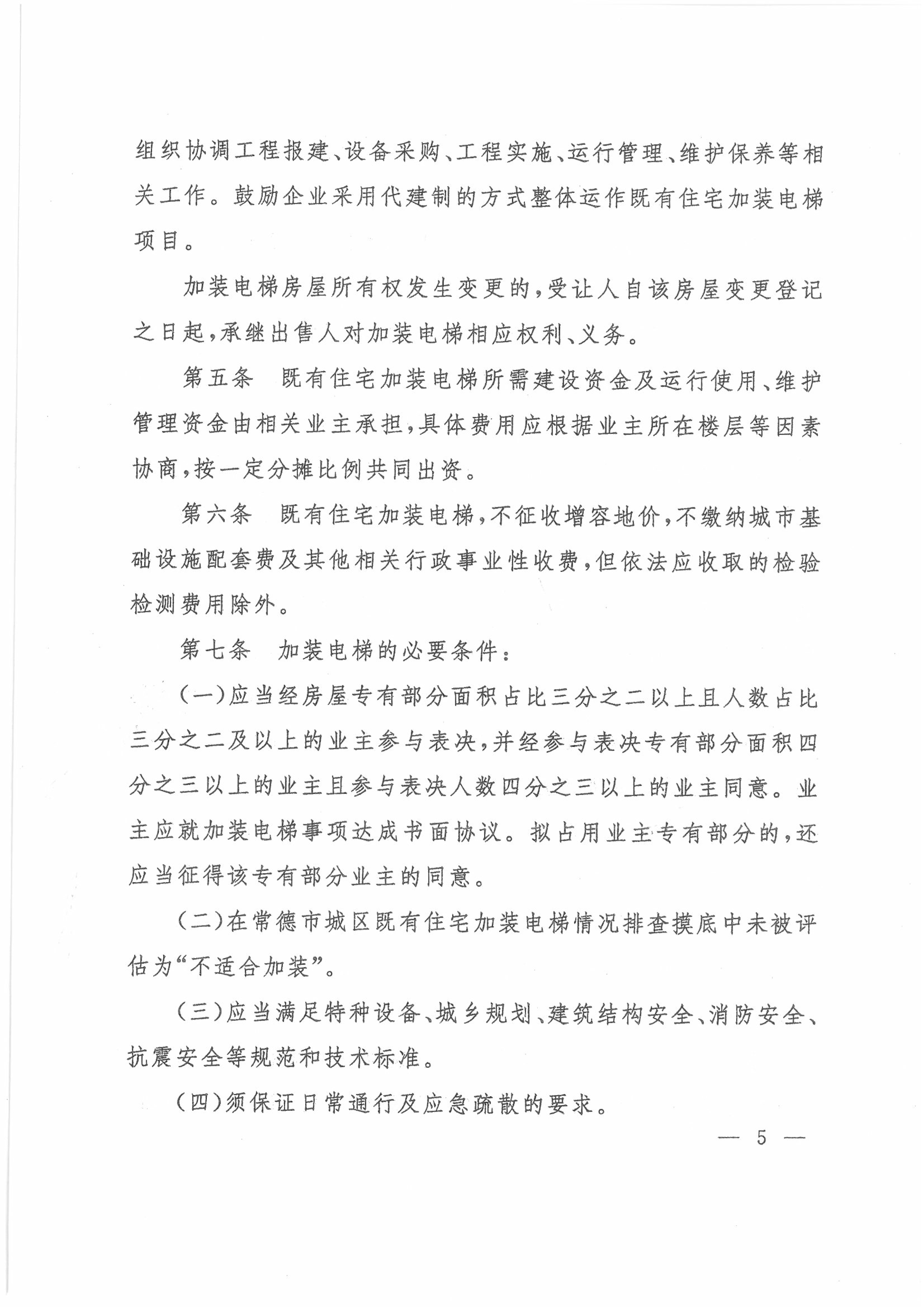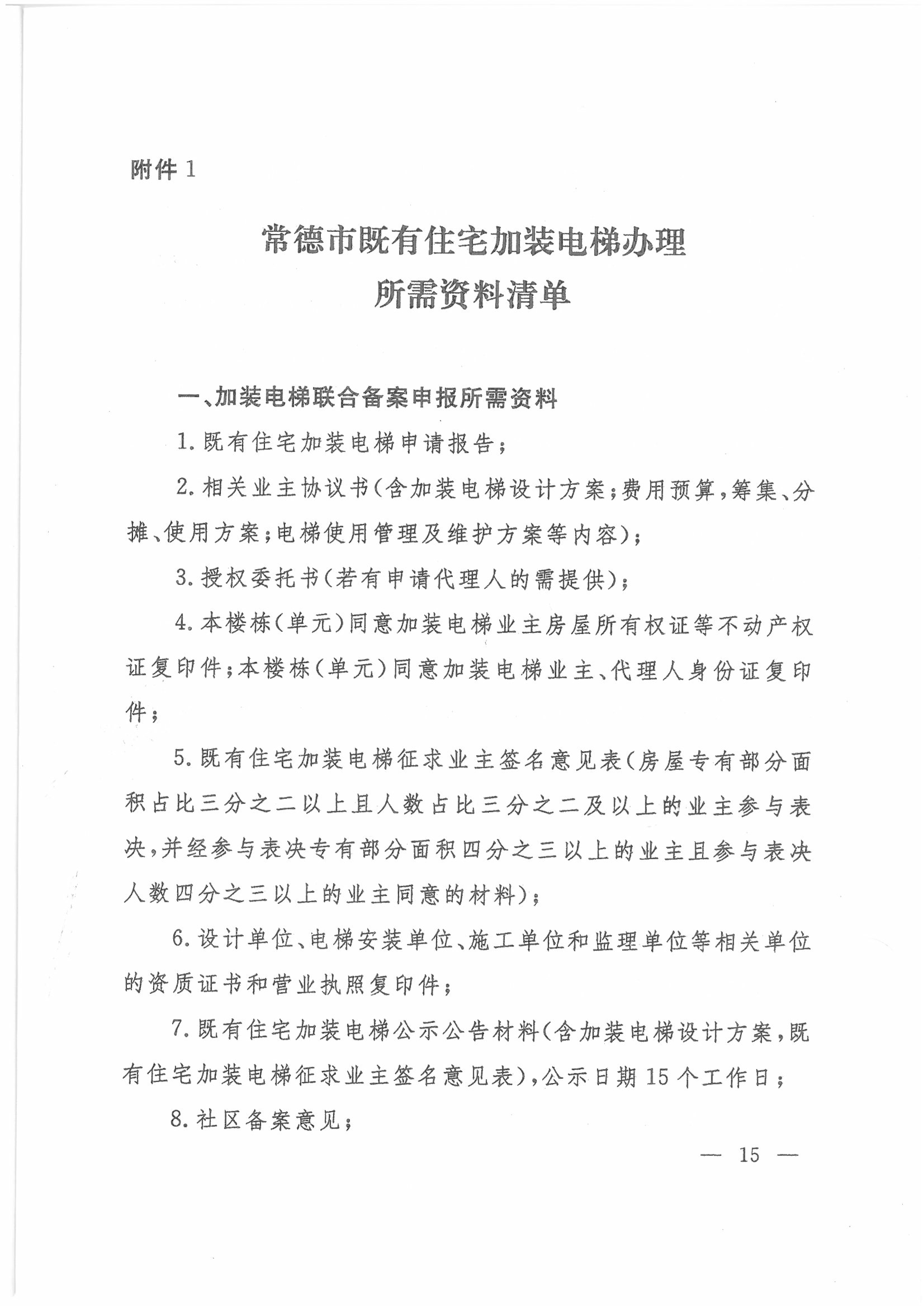 关于印发《常德市既有住宅加装电梯管理办法》的通知